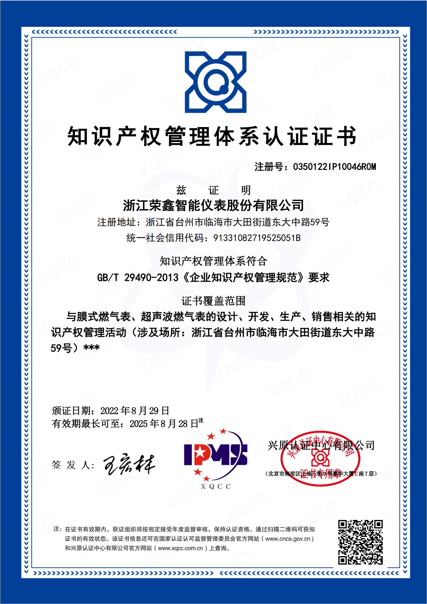 知識(shí)產(chǎn)權(quán)管理體系證書(shū)